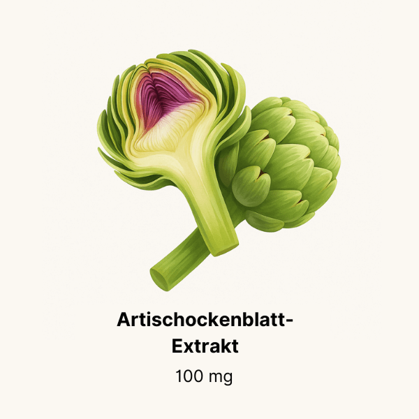 Mariendistelsamen-Extrakt (Silybum marianum, davon 80 % Silymarin), Artischockenblatt-Extrakt (davon 5 % Cynarin), Kurkuma-Extrakt (davon 95 % Curcuminoide), Löwenzahnwurzel-Extrakt (Taraxacum officinale), Ingwer-Extrakt (Zingiber officinale), Schwarzer Pfeffer-Extrakt (Bioperine®, 95 % Piperin), Inositol (Vitamin B8), Cholinbitartrat, Vitamin B6 (als Pyridoxal-5-Phosphat), Vitamin B12 (als Methylcobalamin), Vitamin B9 (als L-5-Methyltetrahydrofolat), Magnesium-Bisglycinat, Reisstärke, Kapselhülle (Hydroxypropylmethylcellulose, HPMC).